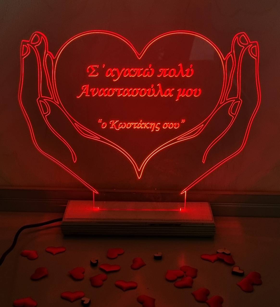 Φωτιστικό LED με μήνυμα της επιλογής σας με χειροποίητη βάση ξύλινη